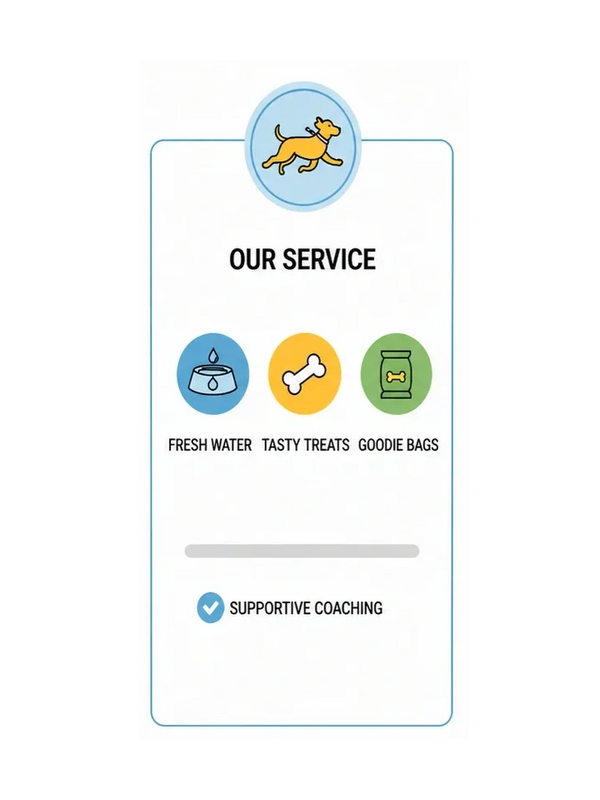 We provide water for your dog to avoid dehydration and a goodie bag with tasty treats to take home.